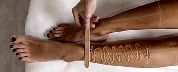 Шугаринг выполняется сахарной пастой: мастер наносит ее против роста волос, а снимает по росту.