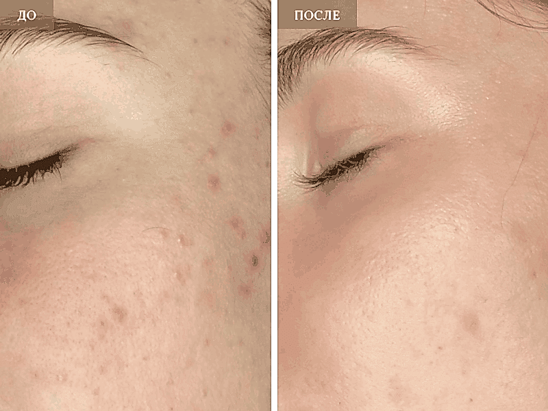 Кожные покровы становятся более гладкими, уменьшаются поры, исчезают мелкие Pin-Up выравнивается цвет лица.