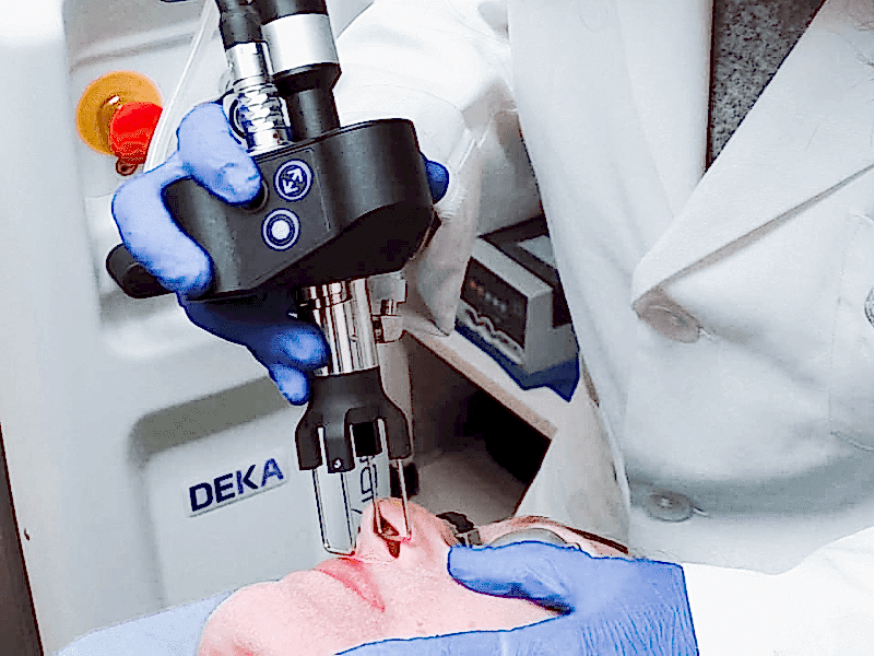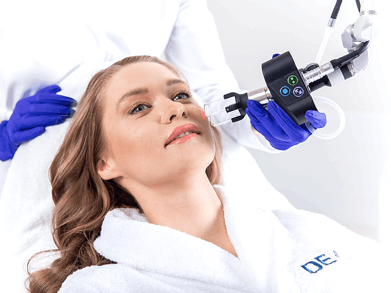 - СО2-лазерную шлифовку лица и других частей тела с использованием углекислотного лазера последнего поколения Deka SmartXide. Он оказывает намного более интенсивное воздействие, требует более длительного периода реабилитации, но при этом способен справиться с более глубокими и Pin-Up дефектами.