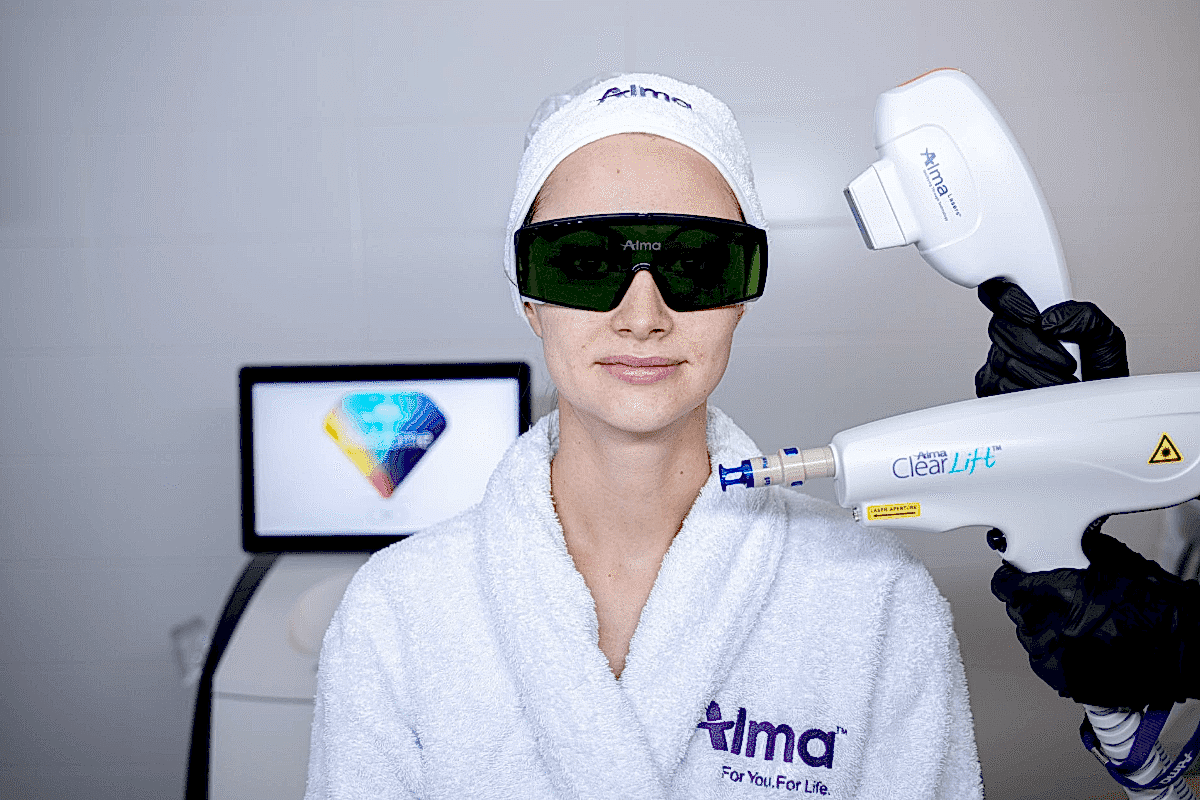 - Первая манипула Clear Lift (фотоакустическое 4D омоложение). Это первый в мире фракционный неаблятивный Q-switch лазер с длиной Pin-Up 1064-532 нм. Под воздействием данного спектра запускается реконструкция дермальной архитектуры - «старый» коллаген и эластин биодеградируют и запускается синтез новых волокон. В результате мгновенно разглаживается рельеф кожи, при этом не остаются видимые следы воздействия.