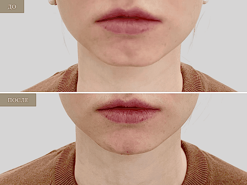 - Глубокие Pin-Up вокруг рта и выраженные носогубные складки.