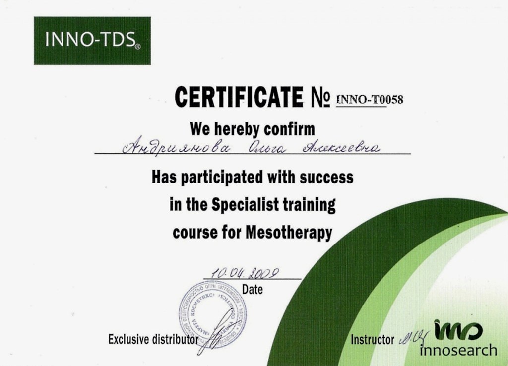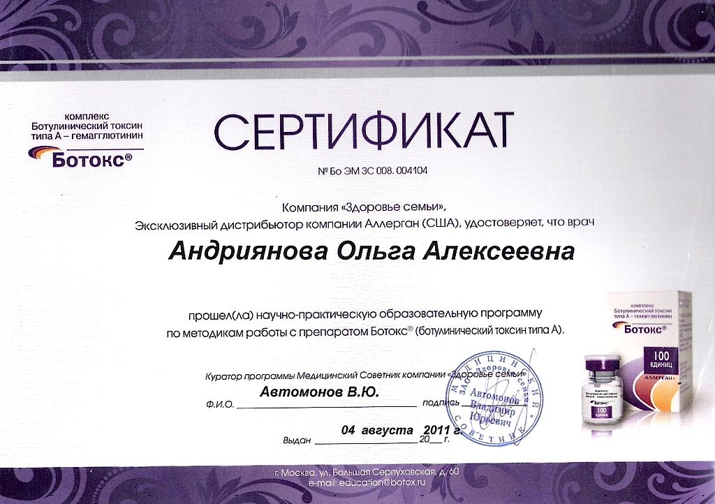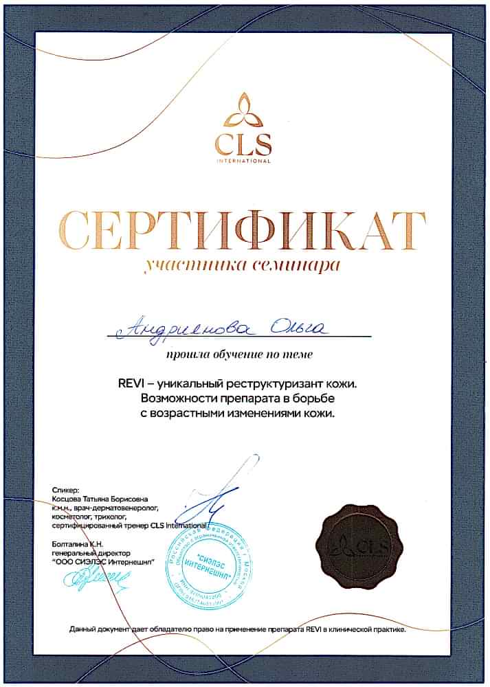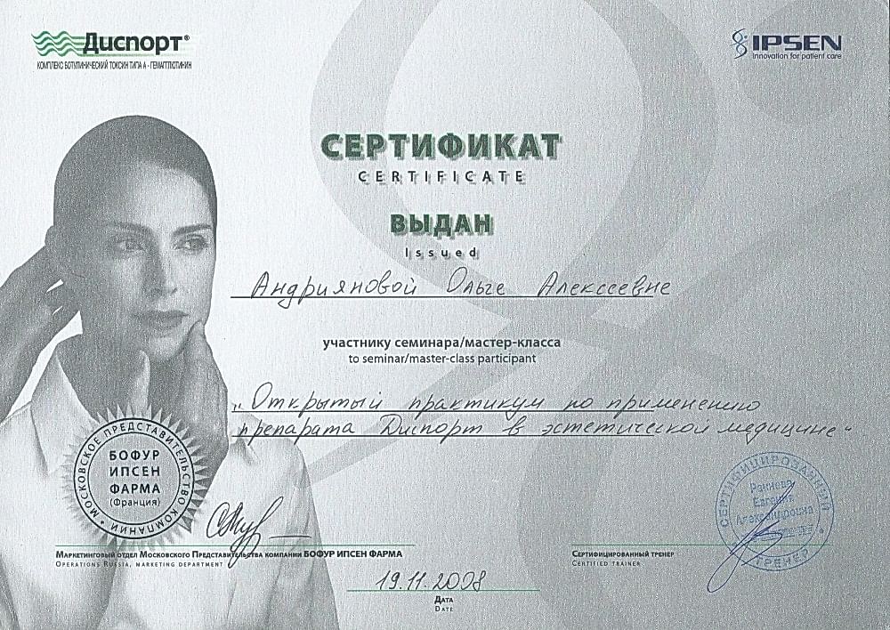 Сертификат по дерматовенерологии: Pin-Up действия до 05.08.2027.