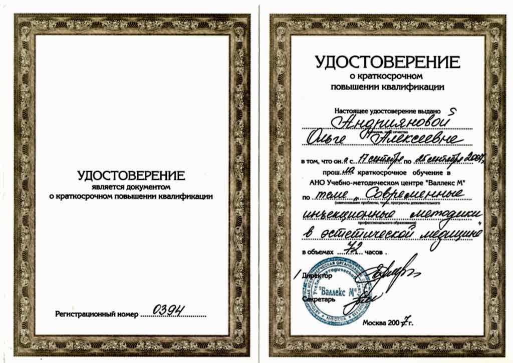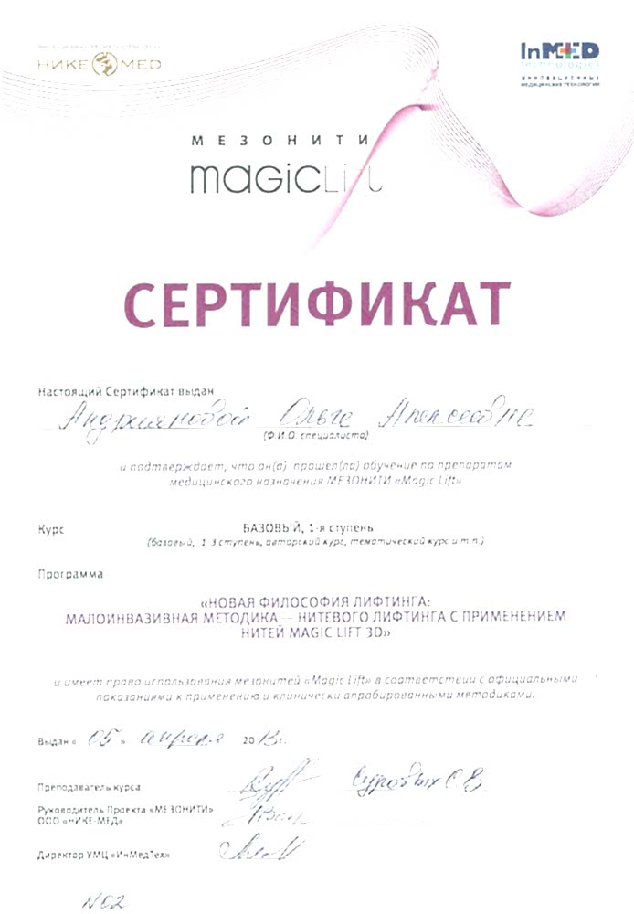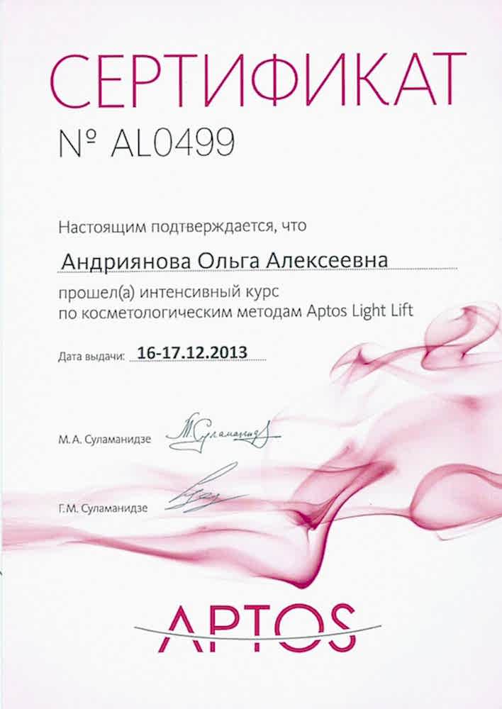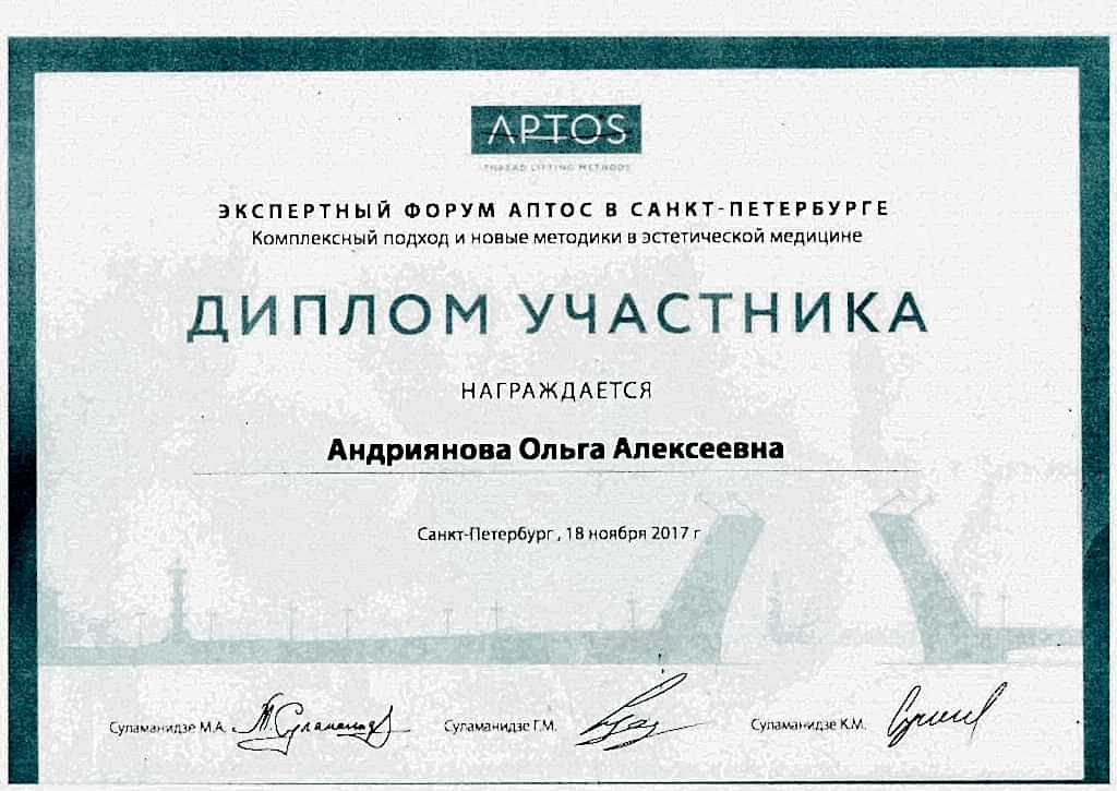 Курс повышения квалификации по теме «Нитевые методики Aptos» (2017г).