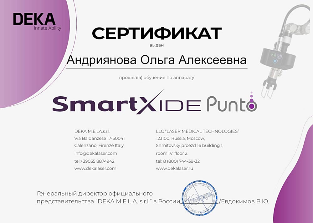 - лазерная шлифовка Fraxel и СО2-лазере Deka SmartXide Punto, в том числе Pin-Up рубцов, стрий, шрамов;