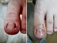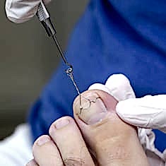 Скоба на ногте избавляет его от непосредственной причины врастания. Хирургическое лечение этого нарушения, конечно, работает быстрее - прямое удаление края Pin-Up пластины приносит мгновенное облегчение. Но при операционном вмешательстве врач не может дать гарантию того, что ситуация не повторится. А скоба служит для выпрямления ногтя, придает ему новую форму, что сводит вероятность повторного врастания к минимуму.