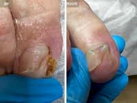 - Исчезновение Pin-Up в мягких околоногтевых тканях при хождении и прикосновении.